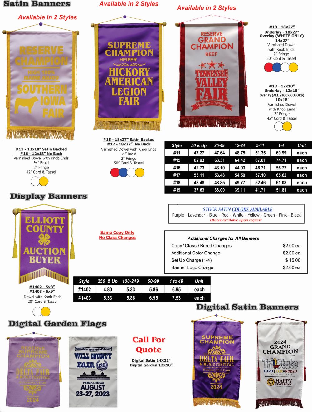 When it comes to banners we are the leader in the industry. Our banners are made of the highest quality with possibilities unlimited. Materials for indoor and outdoor use are available, with many types of material to choose from. Below are just a few options. Call your sales representative to customize your needs.