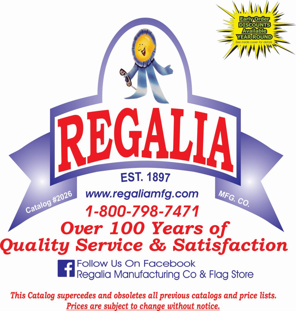 Regalia has been helping to make fairs and other events a success for over one hundred years. We would be proud to be a part of your event. For a free catalog please contact us by email at jennifer@regaliamfg.com or by phone at 800-798-7471. Your request will then be given to your personal sales representative who will help you with all of your needs.